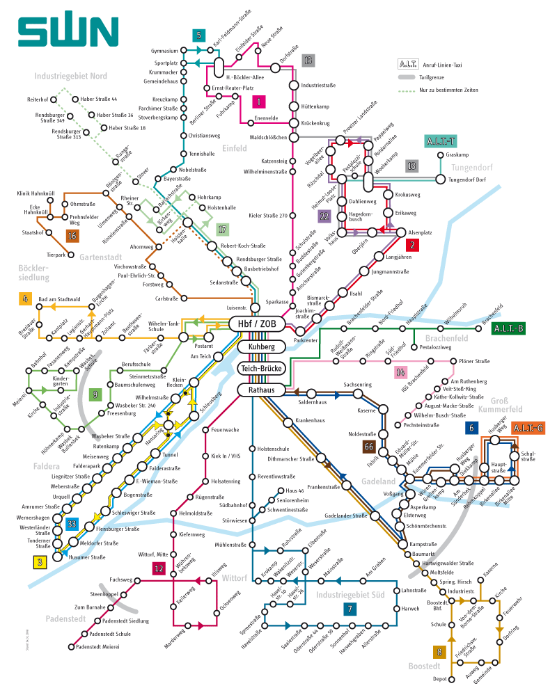 Wir sind mit allen Buslinien des Liniennetzplanes der Stadtwerke Neumünster erreichbar, wenn Sie an der Haltestelle Hauptbahnhof / ZOB aussteigen. Informationen zu Busverbindungen finden Sie unter stadtwerke-neumuenster.de