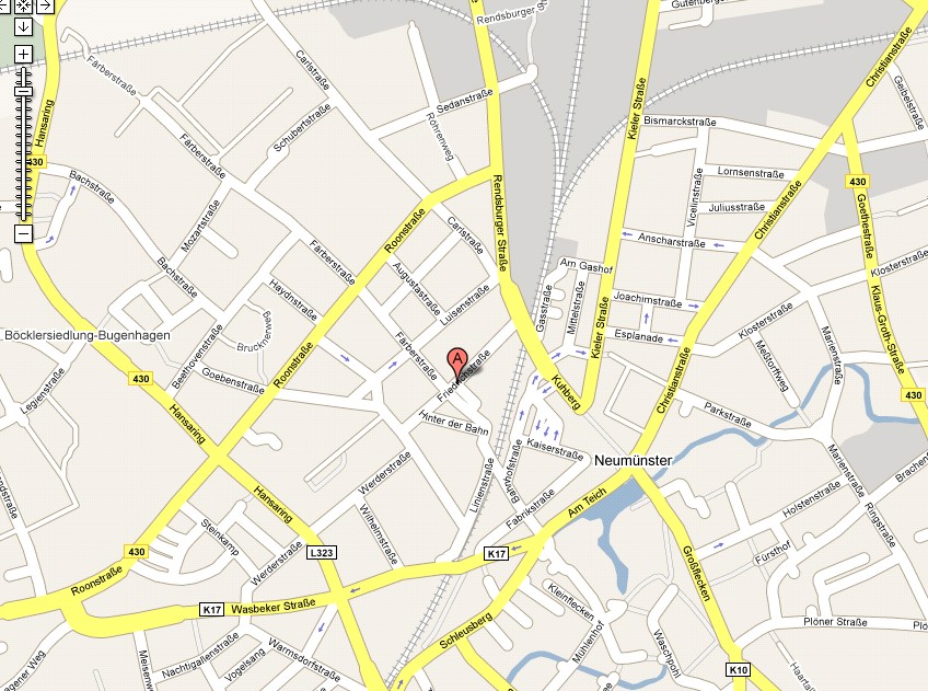 Mit dem Auto erreichen Sie uns, in dem Sie der Ausschilderung "Bahnhof" in Neumünster folgen. Zum Routenplaner...